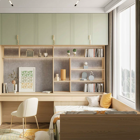Benutzer definierte moderne minimalist ische Schlafzimmer möbel Multifunktion ale Holz garderobe Bücherregal Bett mit Schreibtisch für Wohnzimmer