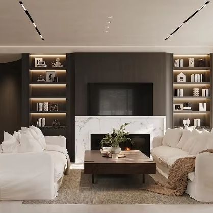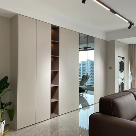 Sistema minimalista personalizzato per tutta la casa-mobili da soggiorno in stile crema dal pavimento al soffitto