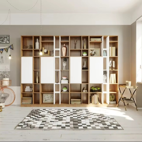 Sistema libreria nordico da pavimento a soffitto-moderno pannello a parete con armadietto porte