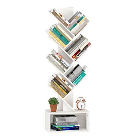 Estantería moderna de 7 capas en forma de árbol simple, estante de almacenamiento de pie de madera para dormitorio, hogar, sala de estar, estantería